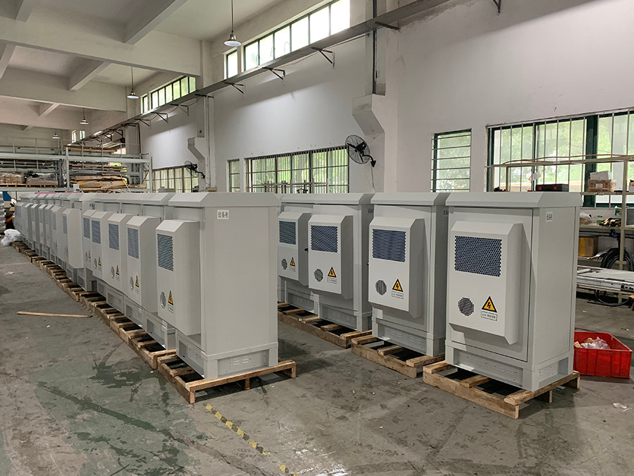 基站機(jī)房節(jié)能新風(fēng)系統(tǒng)的主體部分是由主控制箱和新風(fēng)執(zhí)行系統(tǒng)、網(wǎng)管中心三部分構(gòu)成,包括進(jìn)風(fēng)機(jī)、出風(fēng)機(jī)、室內(nèi)外溫度傳感器、自動(dòng)閥門、空氣過濾器、交流互感器、室外防雨罩以及智能控制器。此系統(tǒng)是根據(jù)通信基站、機(jī)房室內(nèi)外的環(huán)境條件溫差引入室外清潔的冷空氣對通信基站、機(jī)房內(nèi)進(jìn)行自然降溫,同時(shí)排出基站、機(jī)房內(nèi)的熱空氣,從而達(dá)到在常年大多數(shù)條件下替代空調(diào)制冷的效果,避免了空調(diào)長時(shí)間的運(yùn)行所造成的電能浪費(fèi),有效降低通信機(jī)房空調(diào)的運(yùn)行時(shí)間,達(dá)到降低通信機(jī)房電能消耗的目的。