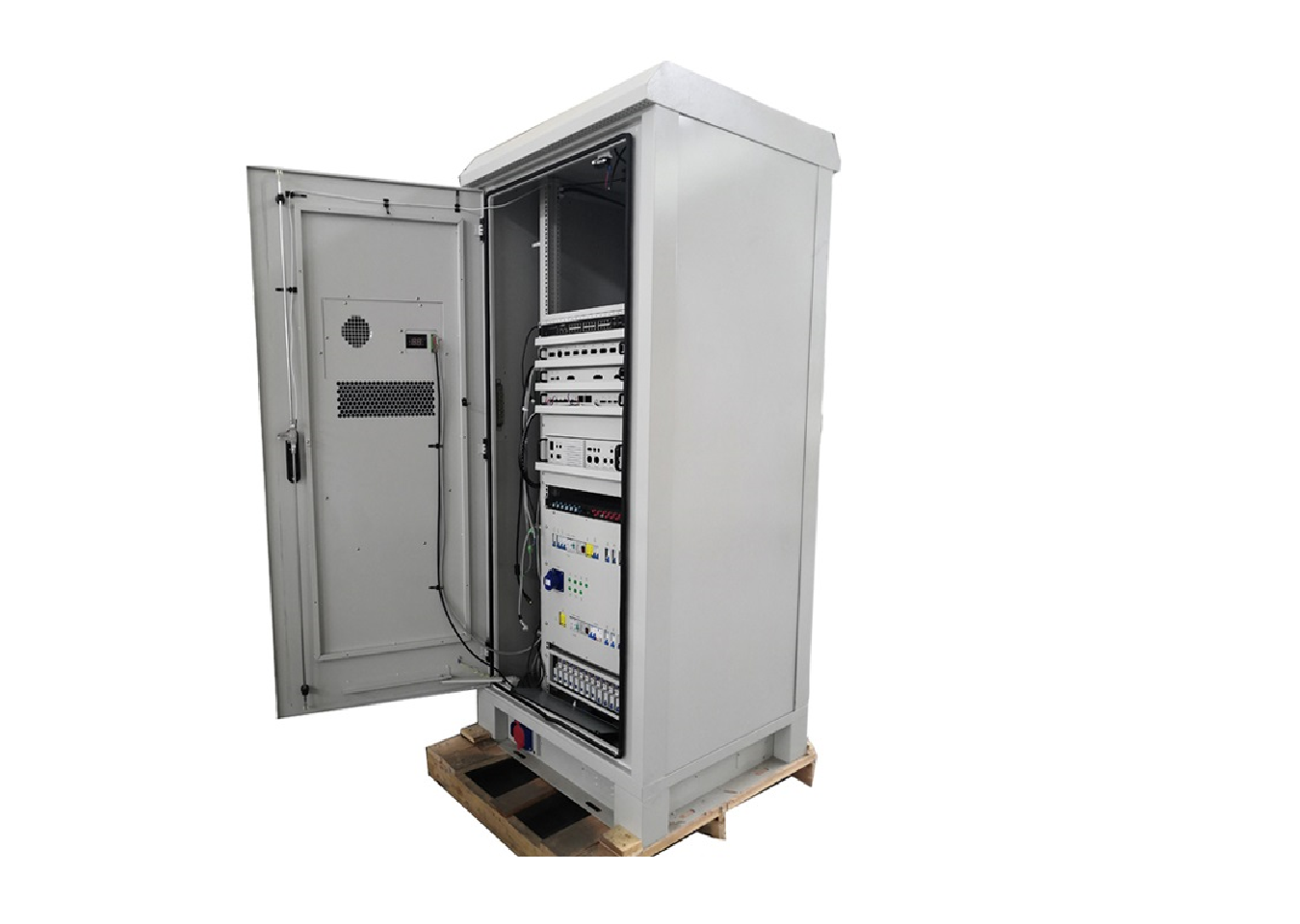 戶外綜合柜可同時(shí)容納各種電池和通信設(shè)備,材料可根據(jù)不同需求由鍍鋅鋼,鋁或不銹鋼制成。機(jī)柜內(nèi)安裝了空調(diào)(其他可選:熱交換器/ TEC /風(fēng)扇),以保持機(jī)柜內(nèi)的溫度穩(wěn)定,從而延長電池和設(shè)備的使用壽命和穩(wěn)定性。